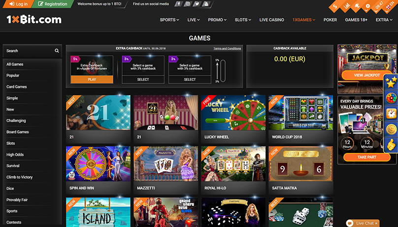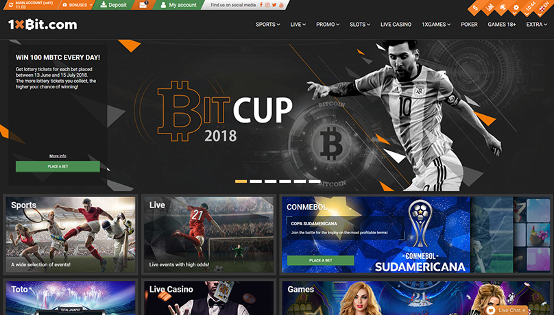 1xBit.com is a platform incorporating sports betting and an integrated e-based casino, offering more than 1,000 sports to their customers to place bets on. The range of sports activities is enormous, covering anything from cockfights to FIFA World CUP 2018 in Russia.