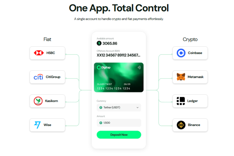Digitap is redefining how users interact with crypto. The platform is the first-ever omni banking solution that allows users to pay with their crypto anywhere a Visa card is accepted.