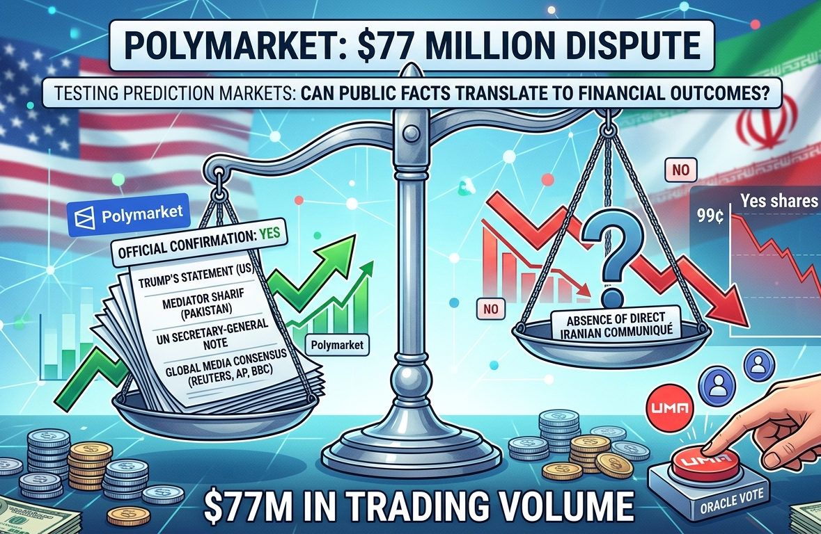 A $77 million dispute on Polymarket is testing one of the central promises of prediction markets: that public facts can be translated into clear financial outcomes.