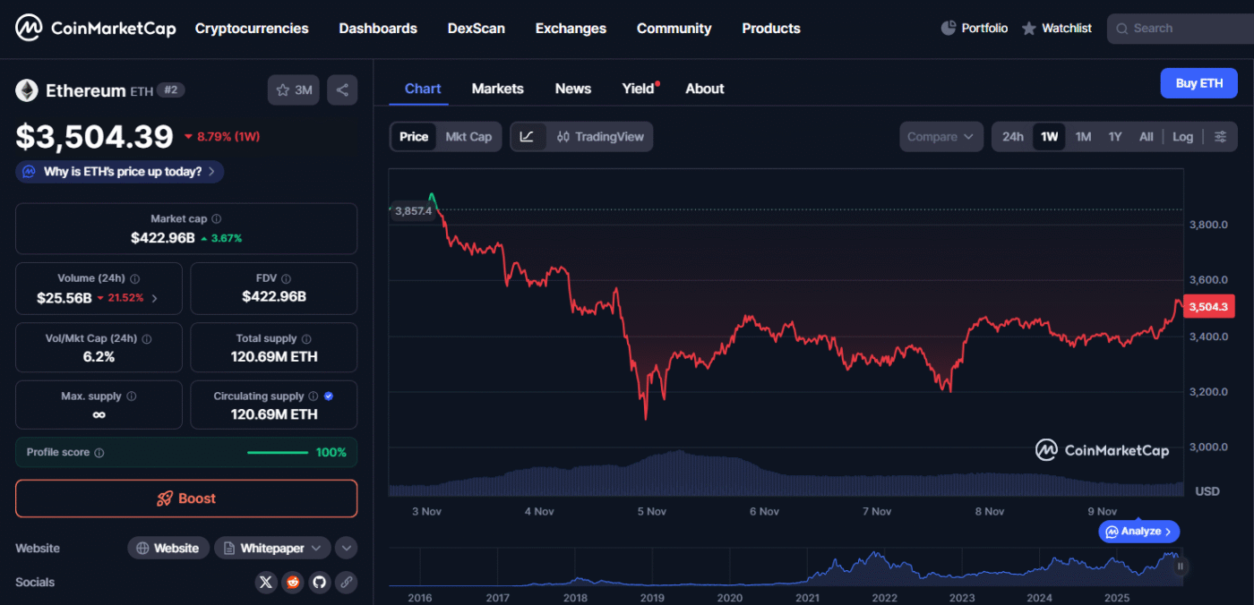 Currently, the ETH price is at $3,504.39, a far cry from the $10 in 2017. In the past week, ETH decreased by 8.79%, with Ethereum keeping its position as the second most valuable cryptocurrency by market cap. Because of this, experts don’t see ETH as the best crypto coin to buy now, as it’s too big to bring the life-changing gains that newer projects can.