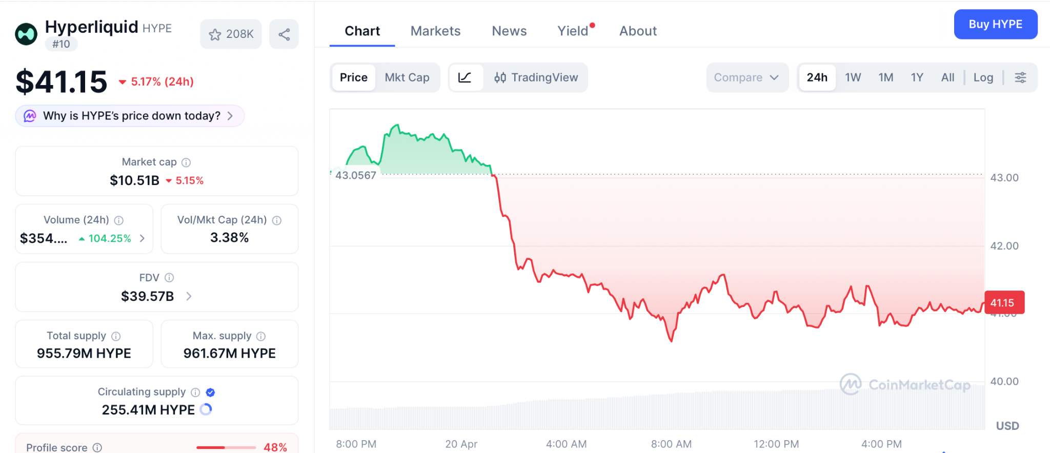 Hyperliquid (HYPE) Price at $41.15 as Hayes $150 Target Drives Fresh Attention
