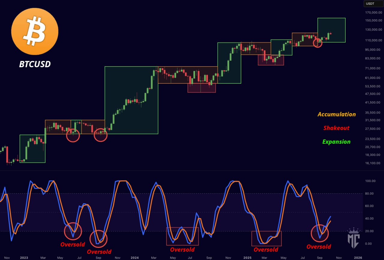 Meanwhile, Mister Crypto notes that the BTC price is entering an expansion phase after several oversold levels. The $126,000–$130,000 zone is near-term resistance.