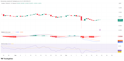 Furthermore, Sheldon posted a short-term chart showing ADA approaching a descending trendline. The trendline has been in place since early October. Sheldon noted, “ADA is looking strong and close to the momentum trend,” pointing to the area where price action is starting to squeeze.