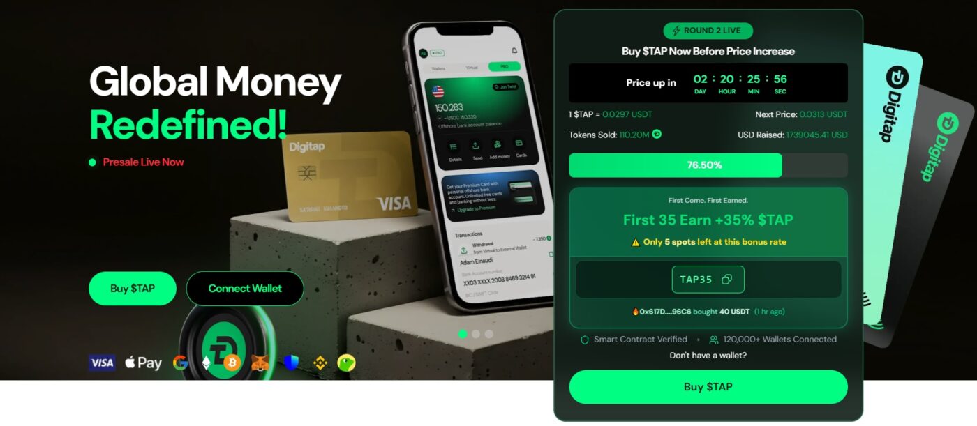 - Digitap ($TAP) – A live omni-bank for crypto and cash.