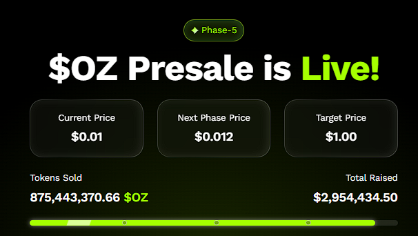 Ozak AI (OZ) has already raised over $2.9 million in its presale, with tokens priced at just $0.01 in Stage 5. The project is attracting significant attention because it combines two of the most powerful narratives in tech—artificial intelligence and blockchain.