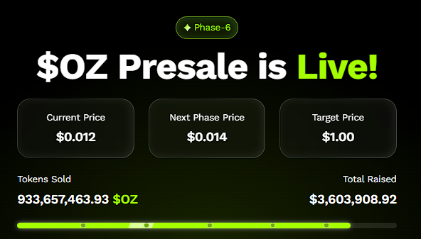 Ozak AI’s journey so far has been first-rate. Currently in its 6th presale stage at a price of $0.012, the project has already raised over $3.5 million and sold over 930 million tokens. This level of investor enthusiasm displays growing confidence in AI-included crypto models, a trend dominating 2025’s investment narrative.