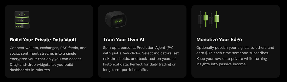 Solana rose to prominence for its speed, low transaction costs, and scalability, becoming a serious competitor to Ethereum. Ozak AI is taking that same disruptive approach but applying it to a new frontier—artificial intelligence on-chain. Its core vision is to create AI Prediction Agents, autonomous and learning-driven entities that process real-time blockchain data to deliver predictive insights and automated execution for users and developers.