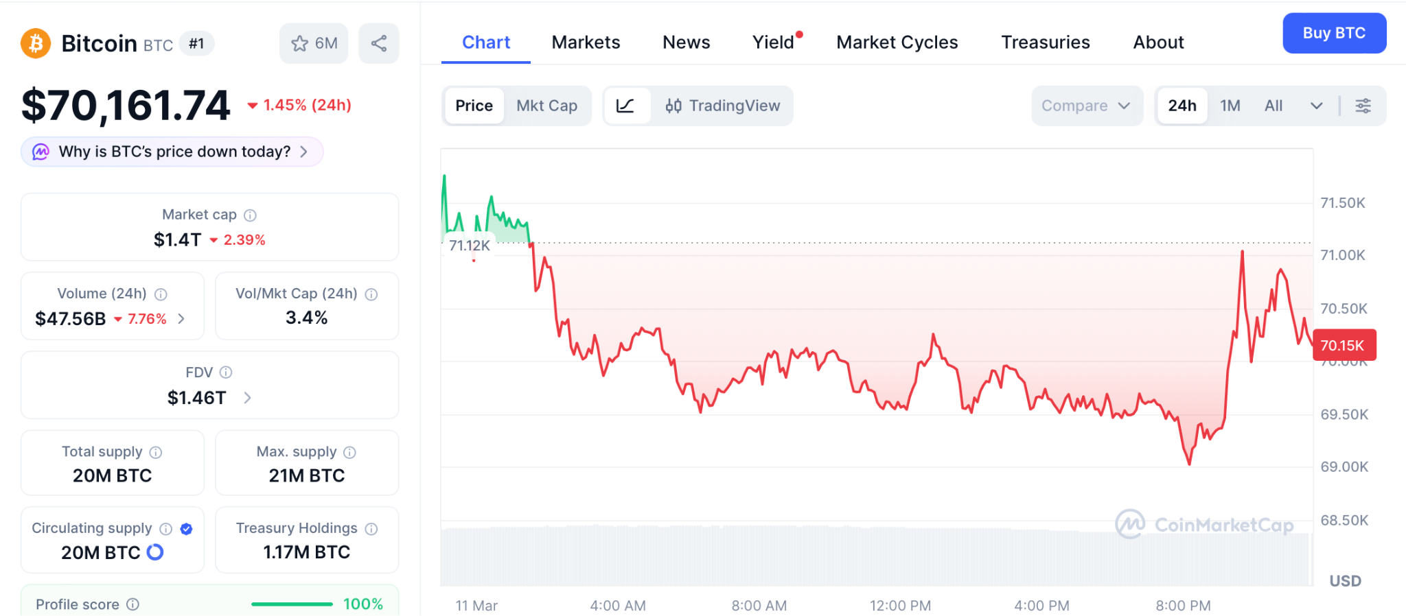 A close below the 20 day EMA near $68,800 returns control to the bears, but institutional accumulation continues through the uncertainty.