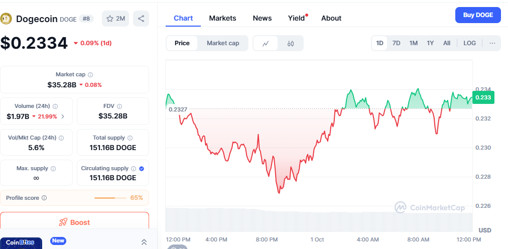 Dogecoin remains a household name in the meme coin sector. Currently trading near $0.2334, it has experienced notable volatility but continues to benefit from strong community engagement. The token’s historical performance shows that retail enthusiasm and social media trends can drive significant price swings, although long-term growth depends on broader adoption and utility.