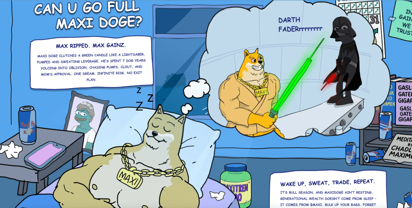 That’s because meme culture has shifted in recent years, thanks to the rise of apps like Pump.fun. Now, everyone is looking for that one trade to make them an overnight millionaire, but no one wants that more than Maxi Doge. He’s portrayed as Dogecoin’s degen younger cousin who breathes 1000x leverage trading and never uses a stop-loss.