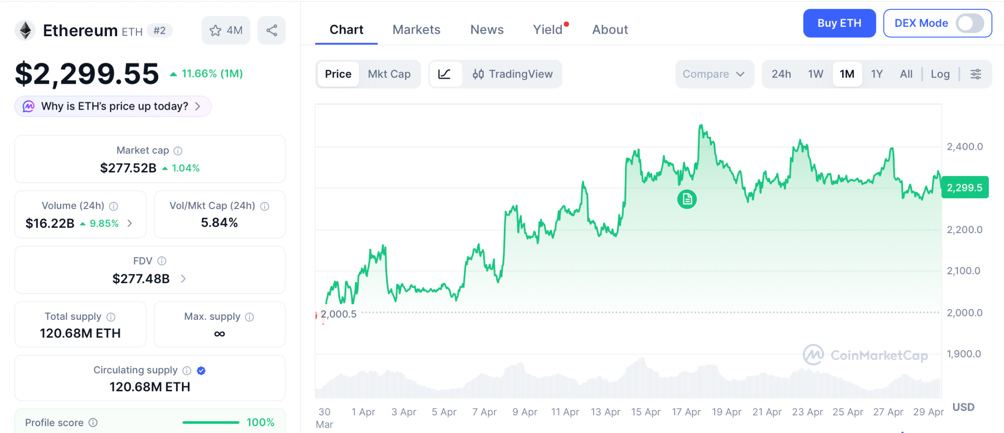 Ethereum (ETH) trades at 2,299 according to CoinMarketCap after gaining 11.66% over the past month. The Glamsterdam upgrade set for June 2026 targets a 78% gas fee cut and parallel processing that would push throughput to 10,000 TPS.