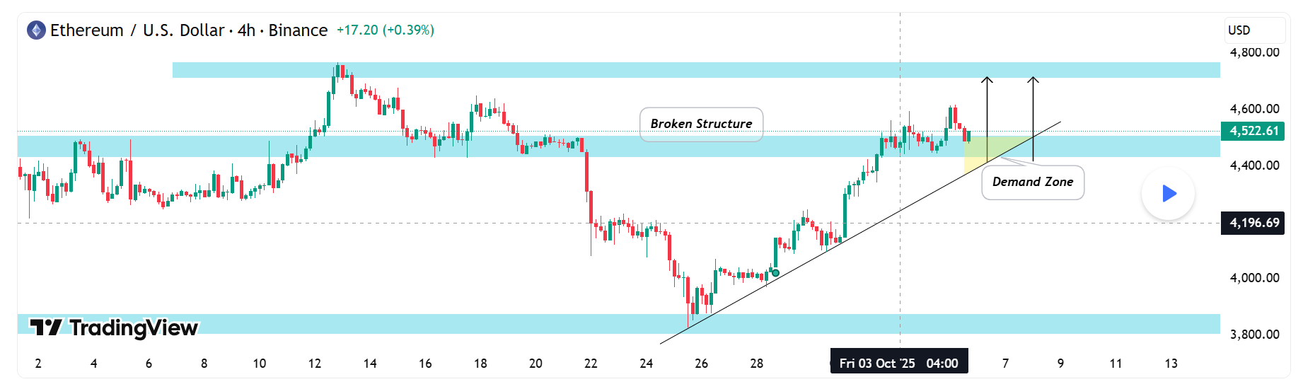 Ethereum is trading at about $4,486 for the moment. A few analysts expect a breakdown through resistance should send ETH to new highs.