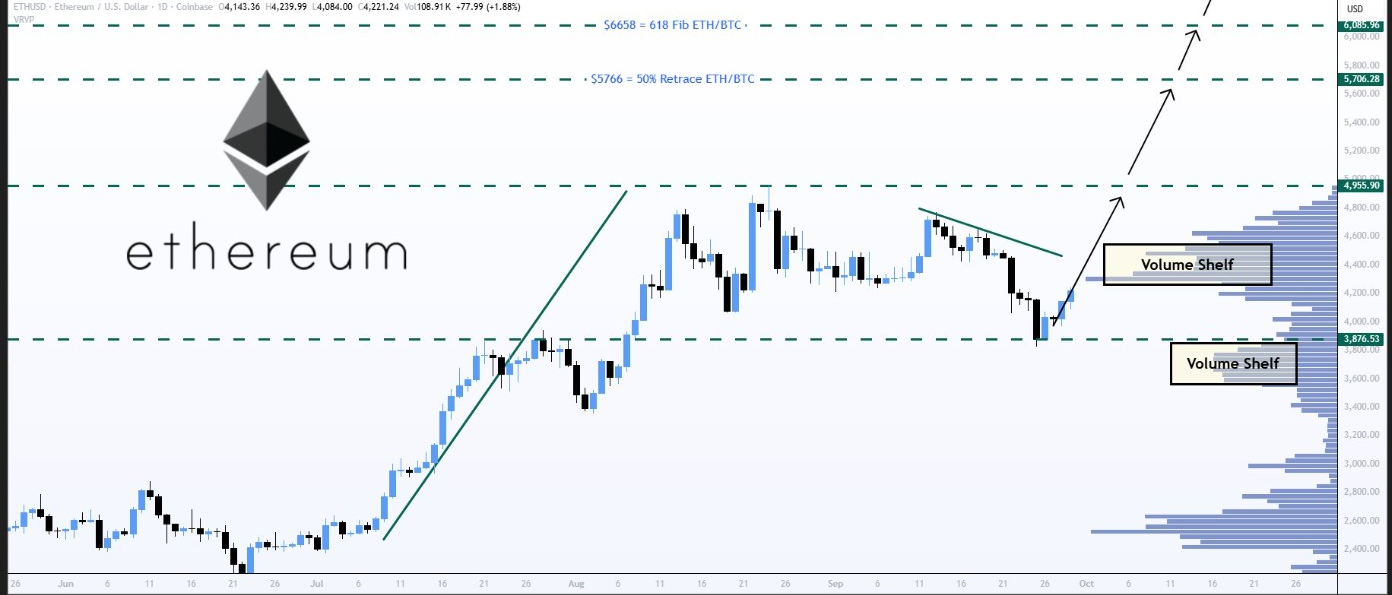 Provided that Ethereum breaks the $4,275 resistance, the subsequent resistance levels are at $4,450 and 4,800. Such levels aside, the medium term estimate is at $5,766, with analysts stating that this price level will match both Fibonacci retracement trends and the ETH/BTC ratio setup.