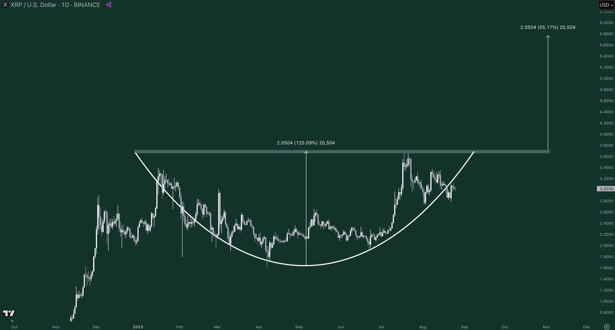 Gordon, a crypto fan, has advised his followers to be calm. In his view, the XRP price is about to make a historic run. He posted a crypto chart which showed the XRP price forming a potential cup-and-handle pattern with a target of $5.80.