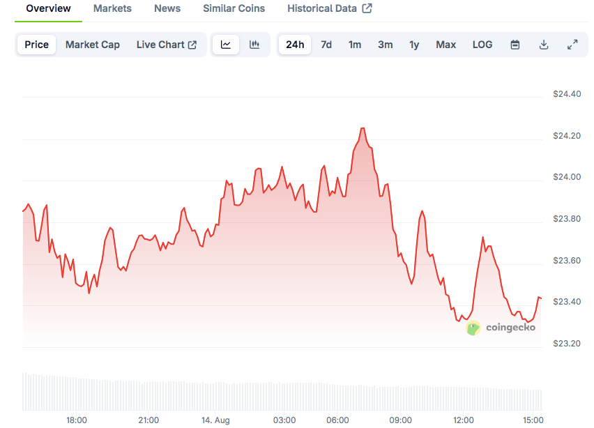 He suggested that the breakout, combined with strong institutional momentum, could provide the conditions for further upside if adoption trends remain intact. At press time, LINK trades at $23.44, up about 35% in a week.