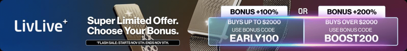 In a further boost to its presale, LivLive is running a promotion that allows investors to choose their bonus. Up until 9th of November, investors can earn either 100% or 200% bonuses on their spendings if they use the codes EARLY100 or BOOST200 respectively, with the latter being for spending over $2,000.