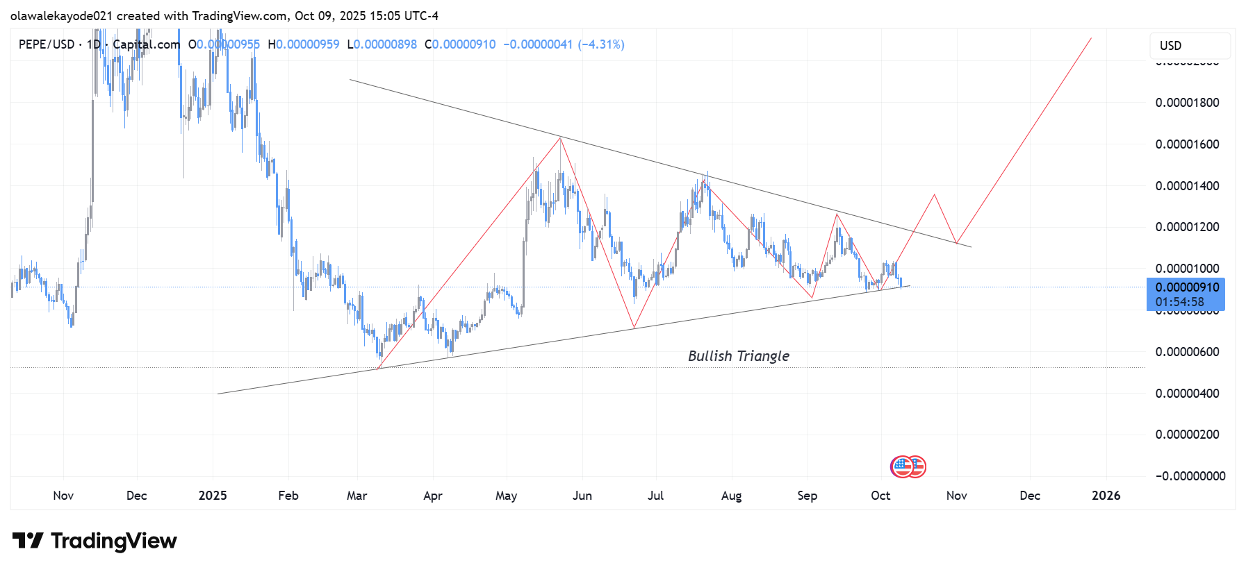 Technically, Pepe (PEPE) is also within a bullish triangle pattern, a formation that often precedes strong upward moves. As the meme sector fires up, Pepe’s (PEPE) liquidity depth and viral potential make it one of the most agile performers in the market.