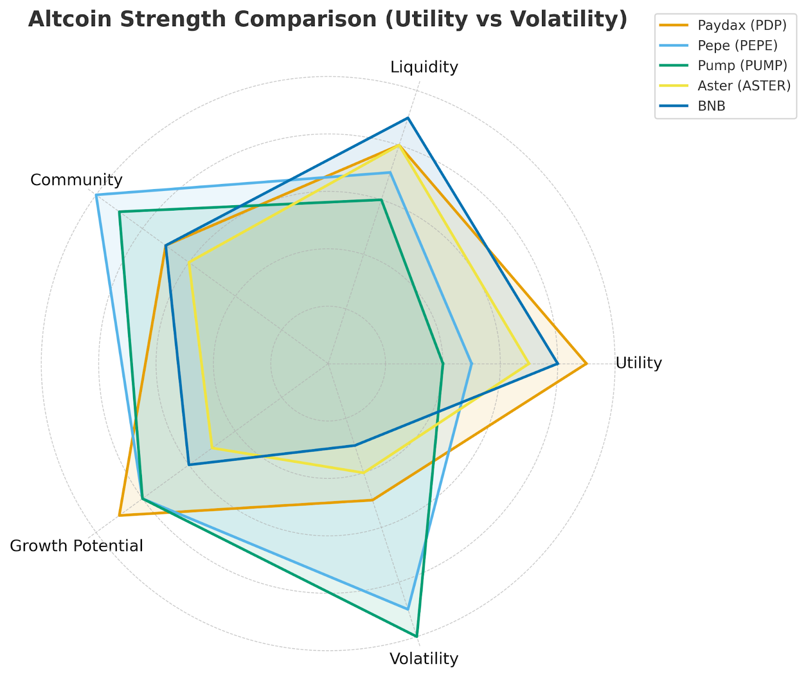 Names like Pepe (PEPE), Paydax Protocol (PDP), and Pump.fun (PUMP) are showing what agility looks like in a market driven by momentum and innovation. With lighter caps, viral traction, and strong communities, these altcoins are positioned to advance faster than Aster (ASTER) and BNB as the bull market ignites.