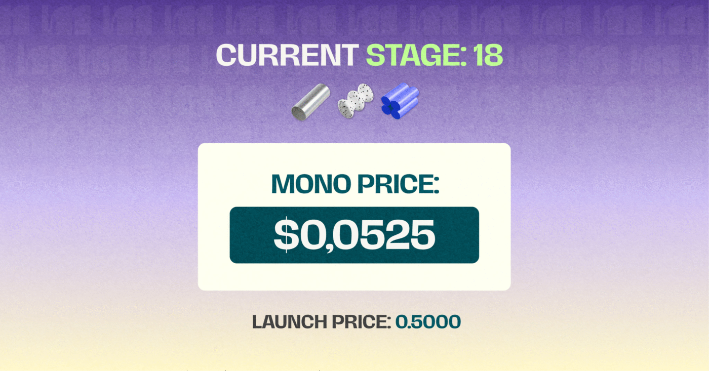 Mono Protocol’s Black Friday activity continues to draw attention as the project reports $3.52 million raised in Stage 18, nearing the $3.60 million target. The current MONO price remains fixed at $0.0525, with a projected $0.500 token launch value, offering an estimated ~852% potential profit. With the Black Friday 100% bonus active until November 30, interest has grown among users tracking opportunities in the broader crypto presale market.