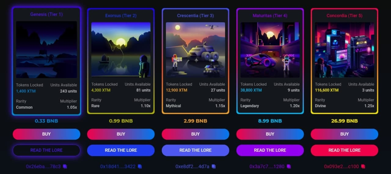 Organized on Torum Finance, there will be 5 different NFT tiers available for purchase, starting from $200 to $16,200. The digital artwork of each tier represents the 5 ecosystem eras of Torum, namely Genesis, Exorsus, Crescentia, Maturitas and Concordia.