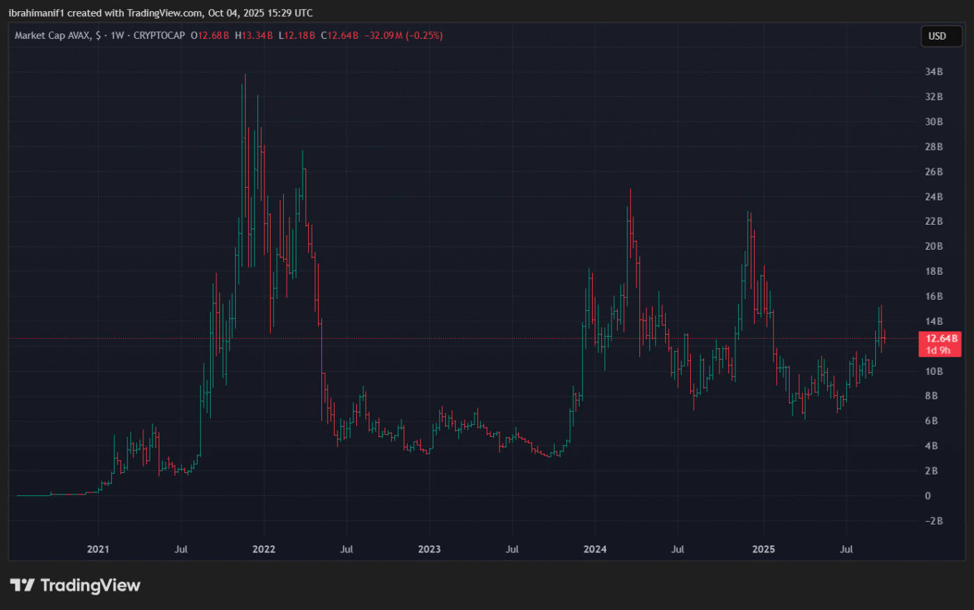 AVAX market cap stands at $12.6 billion. Source: TradingView