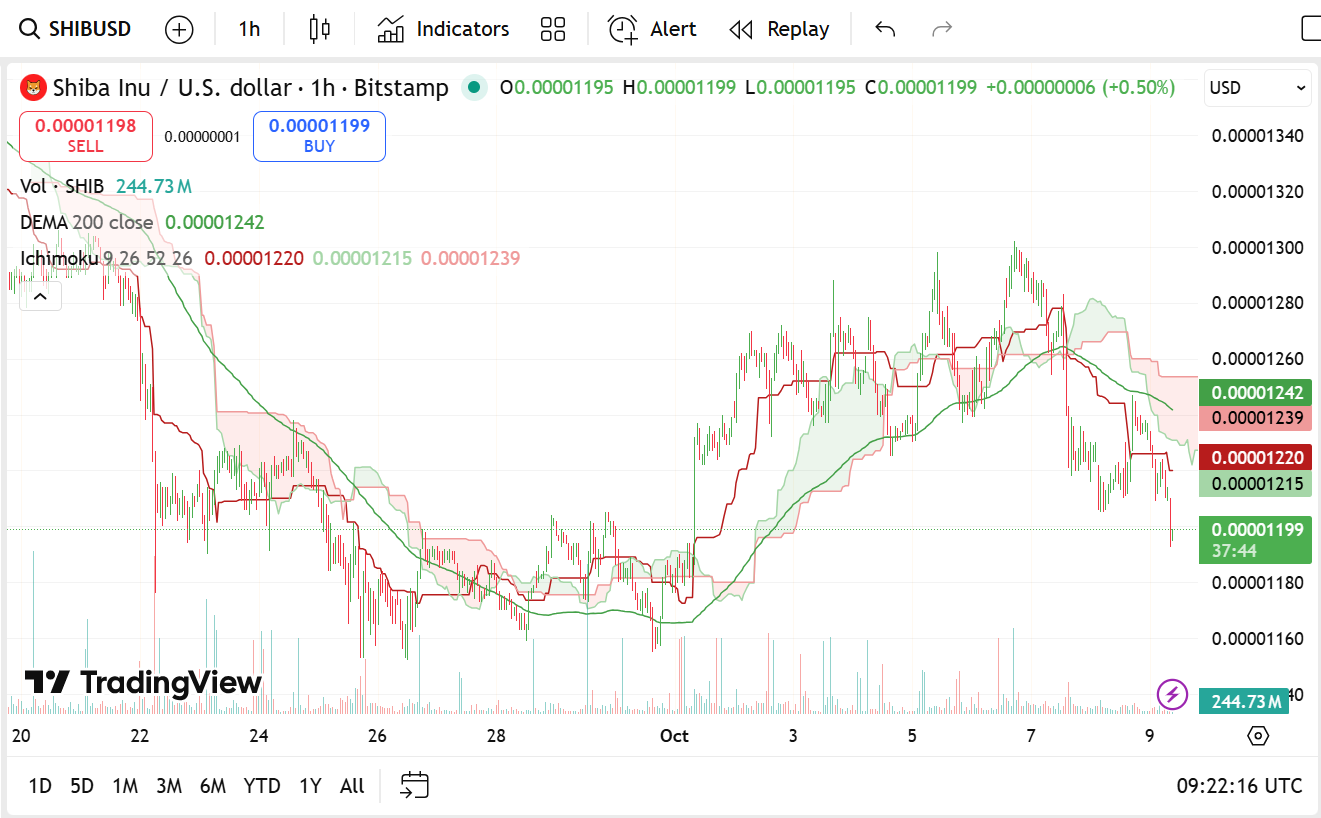 Shiba Inu Coin has remained a prominent name among retail investor-targeted investors. It currently sits at $0.00001195, decreasing 1.65% over the last 24 hours, with a market capitalization of $7.03 billion and trading volume of $175.77 million, which represents a 27.89% day loss.