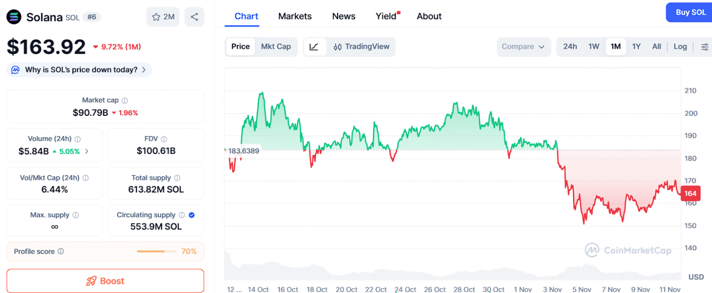 Solana (SOL) continues to assert itself as one of the most powerful Layer-1 blockchains in the crypto landscape. Trading near $163, Solana remains a go-to network for developers, dApps, and institutional investors thanks to its high throughput, low transaction fees, and lightning-fast block times.