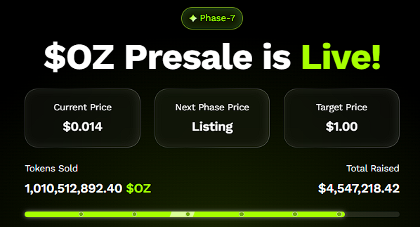 Currently in its 7th OZ presale stage, Ozak AI has already raised over $4.5 million and sold more than 1 billion OZ tokens, signaling strong early investor confidence. Its core innovation lies in AI prediction agents—autonomous systems capable of making data-driven decisions, optimizing processes, and forecasting market trends in real time.
