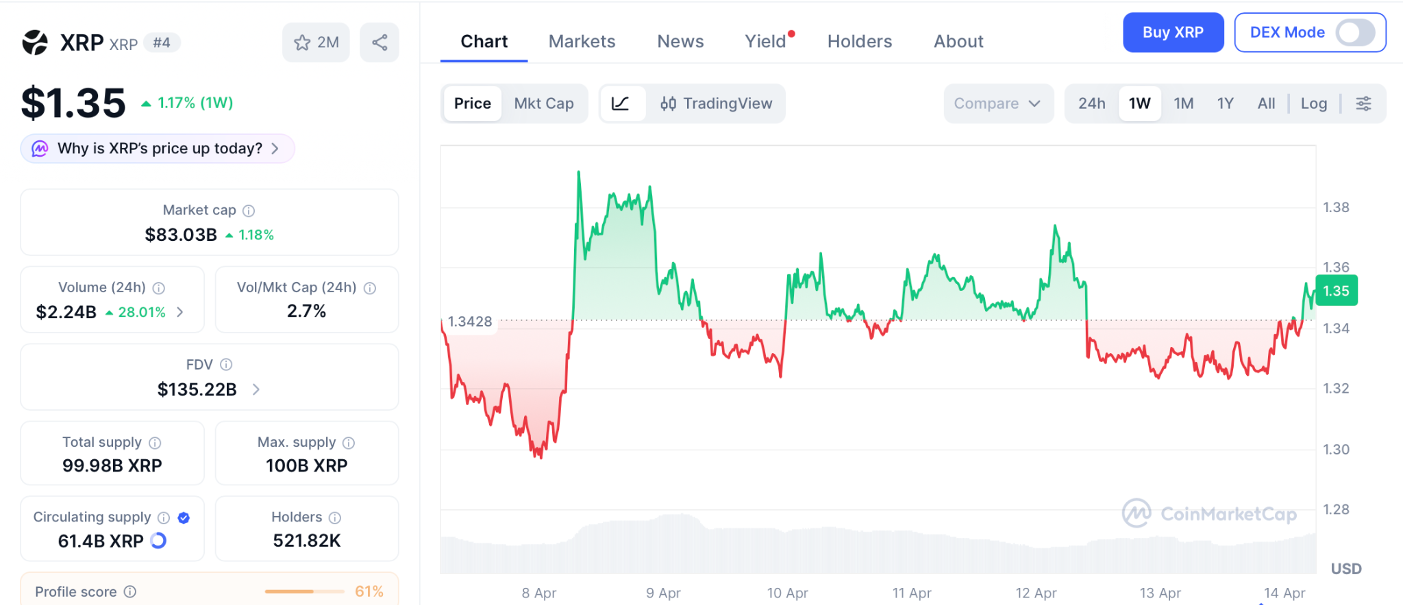 Ripple (XRP) trades at $1.35 after falling 63% from its $3.65 all time high per CoinMarketCap. Seven spot ETFs are live but weekly inflows have cooled from $1.3 billion in the opening months to $119 million now per CoinShares.