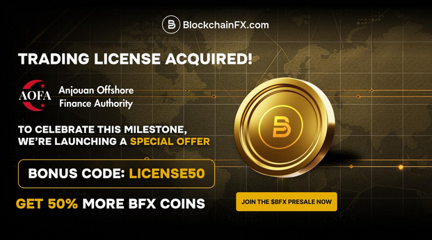 BlockchainFX has taken the spotlight by combining two things most investors crave: stability and rewards. The project just secured an international trading license from the Anjouan Offshore Finance Authority (AOFA) – a massive step that positions it as a regulated, globally trusted platform. That kind of legitimacy is rare for any presale, let alone one growing this fast.