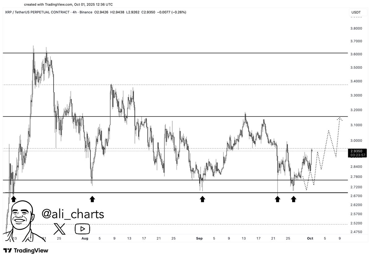 XRP price today is trading around $2.94 after climbing 4.1% in the last 24 hours, showing renewed bullish momentum. According to renowned analyst Ali Martinez, a decisive breakout above $2.94 could send XRP price toward the $3.00–$3.15 zone. This key resistance remains the turning point that traders are watching closely, with bullish sentiment building across Ripple news.